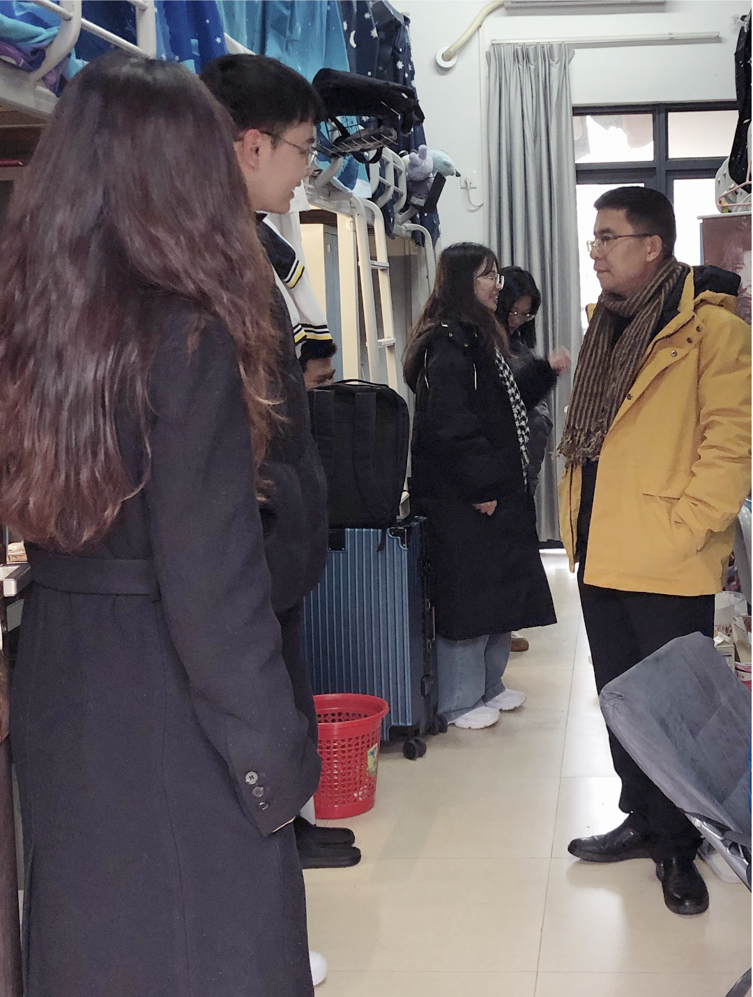 在走访过程中,老师们耐心地询问同学们期末考试复习的各项事宜,了解员工的放假时间,提醒同学们离校后关好门窗水电,确保用电安全,回家途中注意安全。融洽的问候过后,本次员工公寓的走访活动圆满结束。
