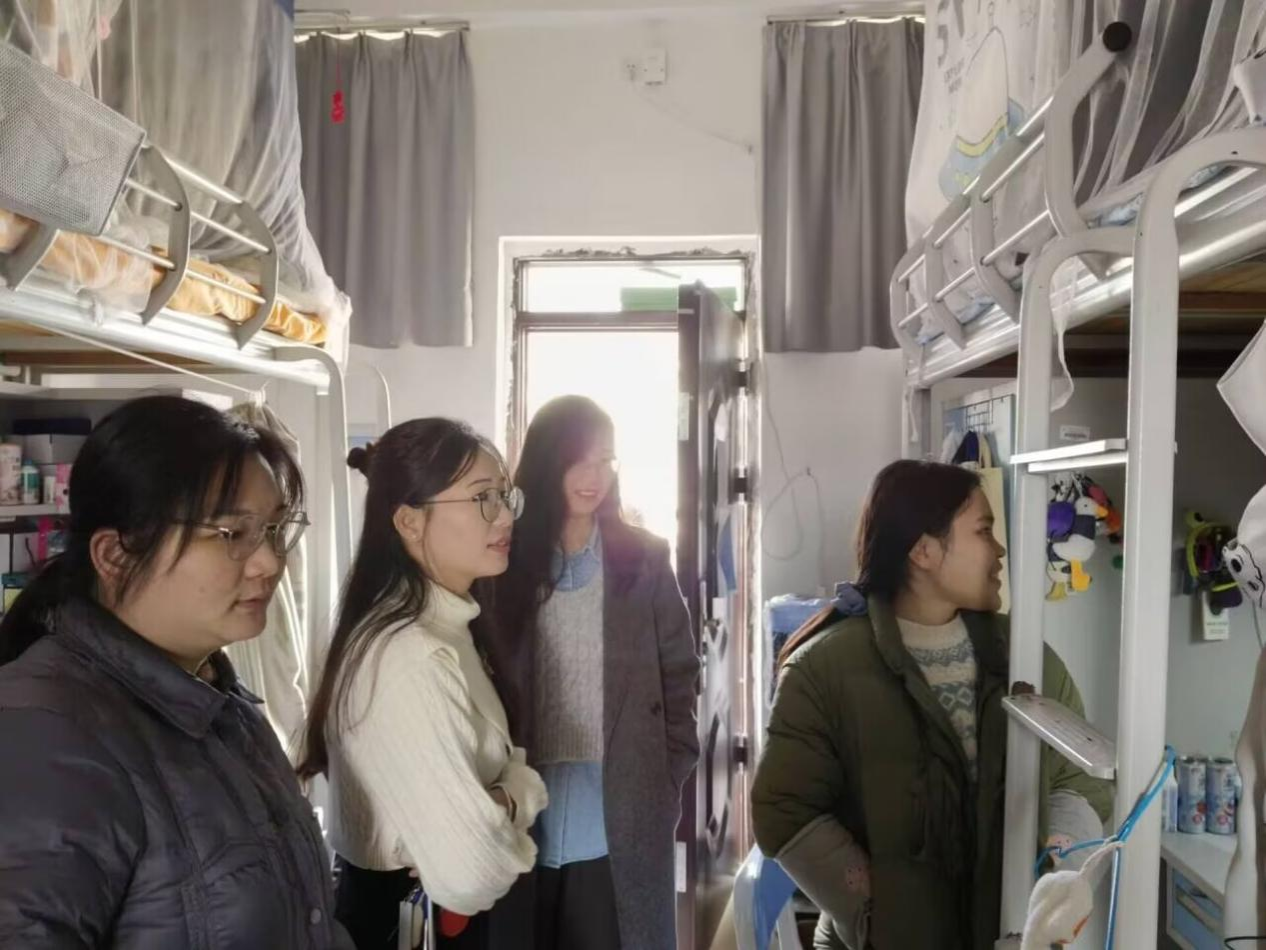 宿舍内务检查活动开始时,领导老师们依次走访各个宿舍,对宿舍的内务情况进行检查、记录以及点评指正。对于内务整洁的宿舍,领导老师们给予表扬和鼓励;对于检查过程中发现的内务问题,领导老师们给予指正并引导员工认真对待内务问题。