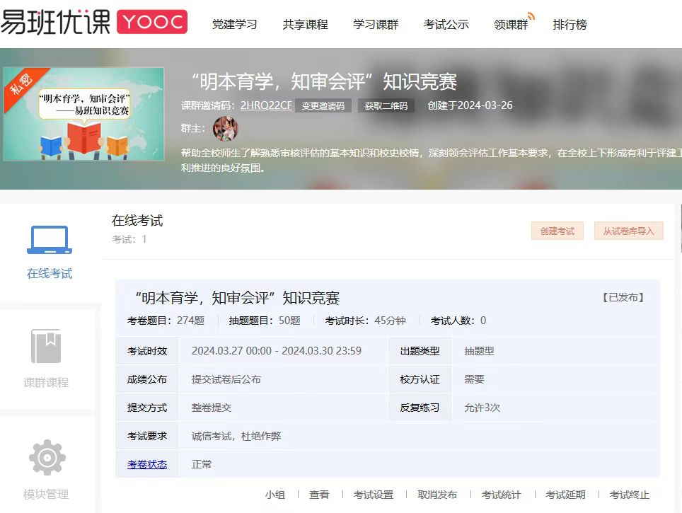 为帮助全校师生了解、熟悉审核评估的基本知识和校史校情,深刻领会评估工作的基本要求,在全校上下营造有利于评建工作顺利推进的良好氛围,太阳成tyc33455ccwww易班分站于2024年3月26日至3月30日组织开展“明本育学,知审会评”线上知识竞赛活动。参与对象为太阳成tyc33455ccwww全体员工。