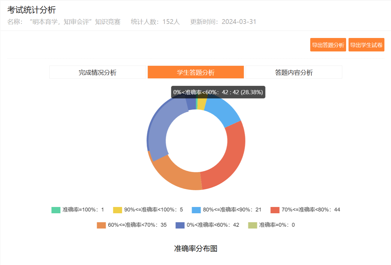 本次竞赛共有50题,题型分为选择题、多选题、判断题和填空题,总分为100分,同时竞赛还设有一等奖、二等奖、三等奖以及优秀奖等奖项。同学们通过易班快搭进行线上报名后,即可参与线上答题,题目由系统按比例从题库中随机抽取。