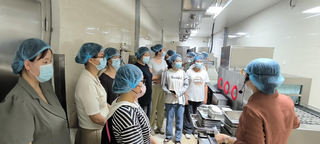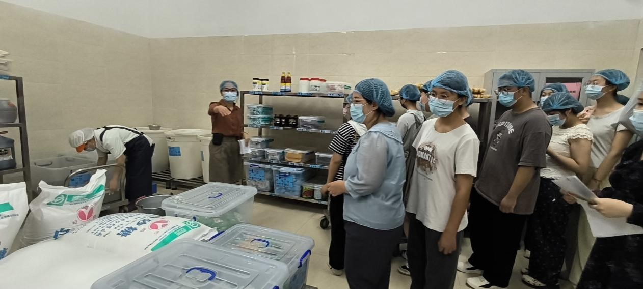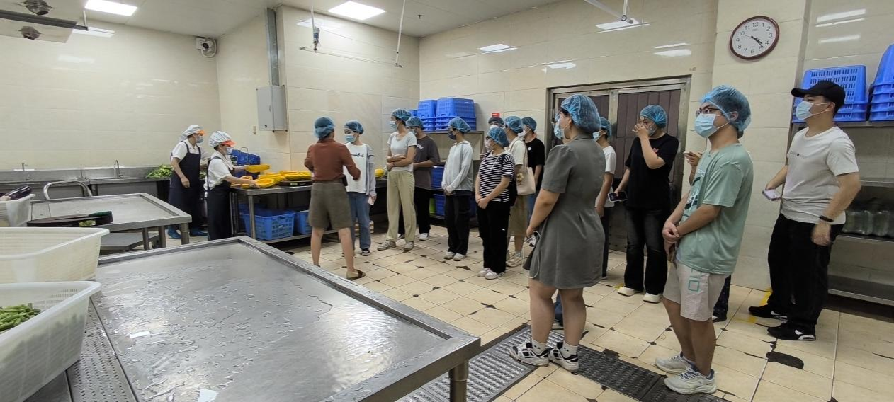 在后勤基建处膳食科老师的带领下,公司师生代表深入公司自营食堂内部,了解食堂的工作岗位、工作制度、工作流程等。从走廊到洗碗间,从备餐间到厨房,干净整洁,体现了食堂工作人员对全校师生健康安全,食品安全的保护与维护;从肉类禽类的处理到菜刀的使用摆放,处处体现了食堂工作人员井井有条的工作秩序和一心为师生打造良好用餐体验的工作态度。