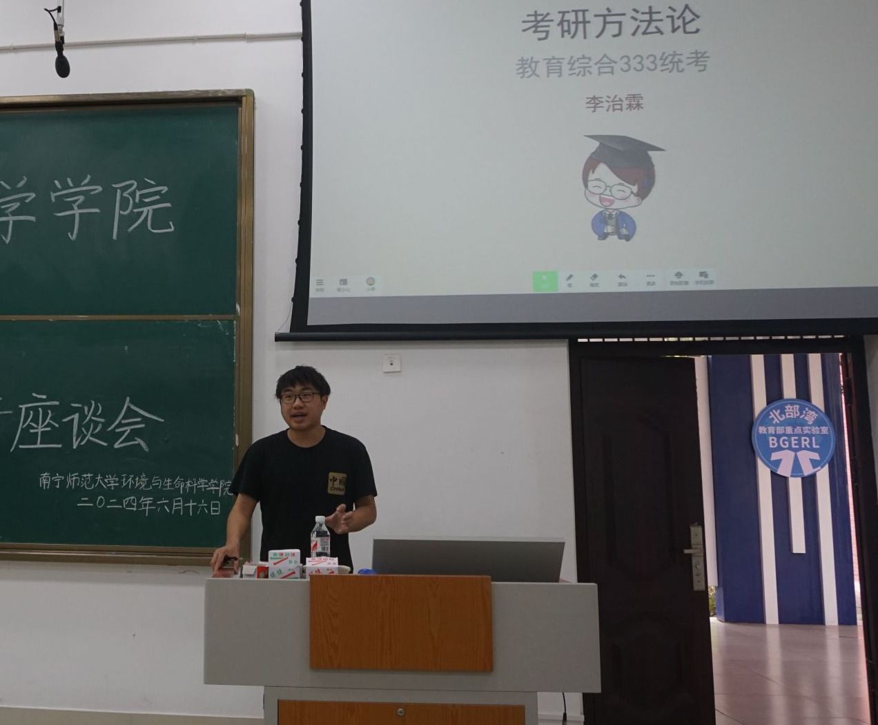 为了帮助同学们了解当前的考研和就业形势,进一步明晰未来的发展方向,太阳成tyc33455ccwww于6月16日上午在地海楼B109教室举办分享会为同学们提供一个交流学习的平台。此次座谈会特邀2019级学科教学(生物)研究生员工、现任南宁市第二十中学初中生物备课组组长李治霖进行考研和就业经验分享。