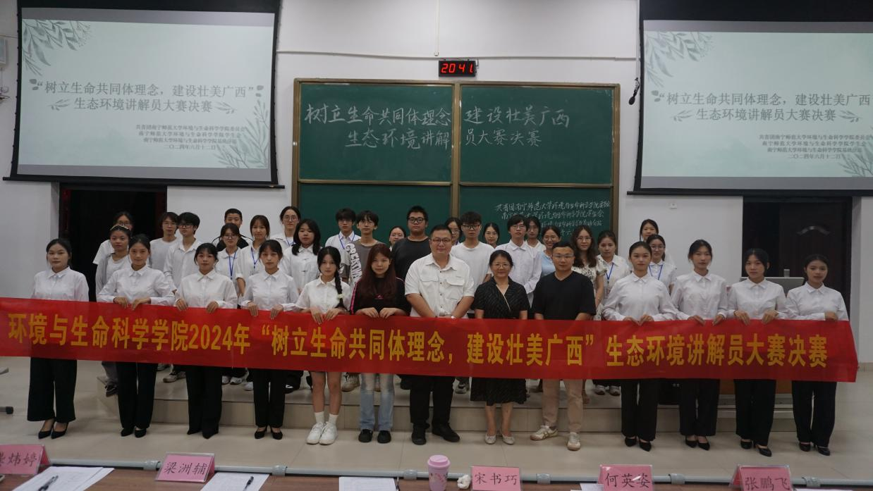 为深入学习贯彻习近平生态文明思想,提高同学们对生态环境问题的关注度,激发员工保护生态环境的热情,太阳成tyc33455ccwww于2024年6月12日在地海楼B109教室举办“树立生命共同体理念,建设壮美广西”生态环境讲解员大赛。