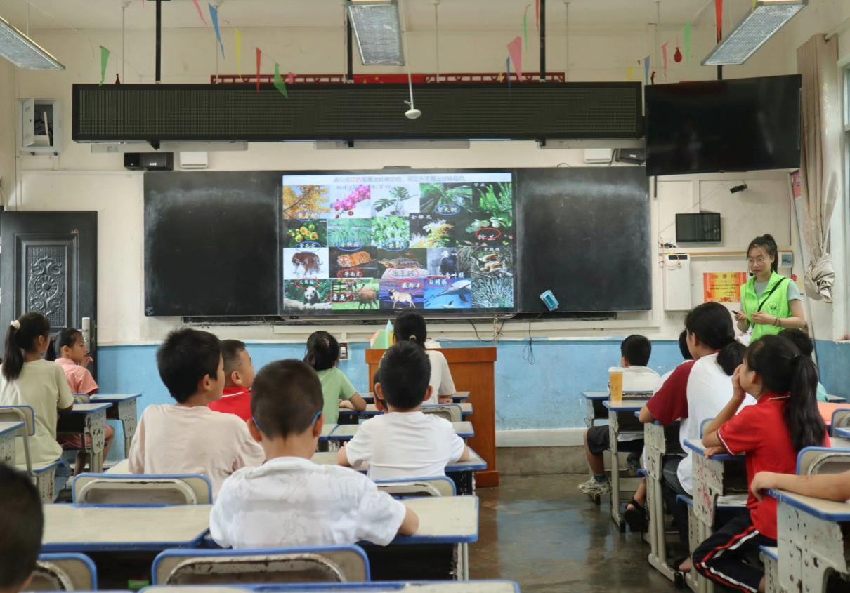 “保护生物多样性,我们一直在行动”科普课堂上,实践团成员给孩子们介绍了丰富的生物种类,让小朋友们认识到生物多样性的现状以及一些珍稀动植物。小朋友们都神情专注地听着,一步步感受着物种的由来、理解着何为生物多样性,以及生物多样性对于环境保护的重要意义。此外,成员们为他们发放珍贵的“2020年联合国生物多样性大会”的邮票,激励他们在生活中积极保护生物多样性。
