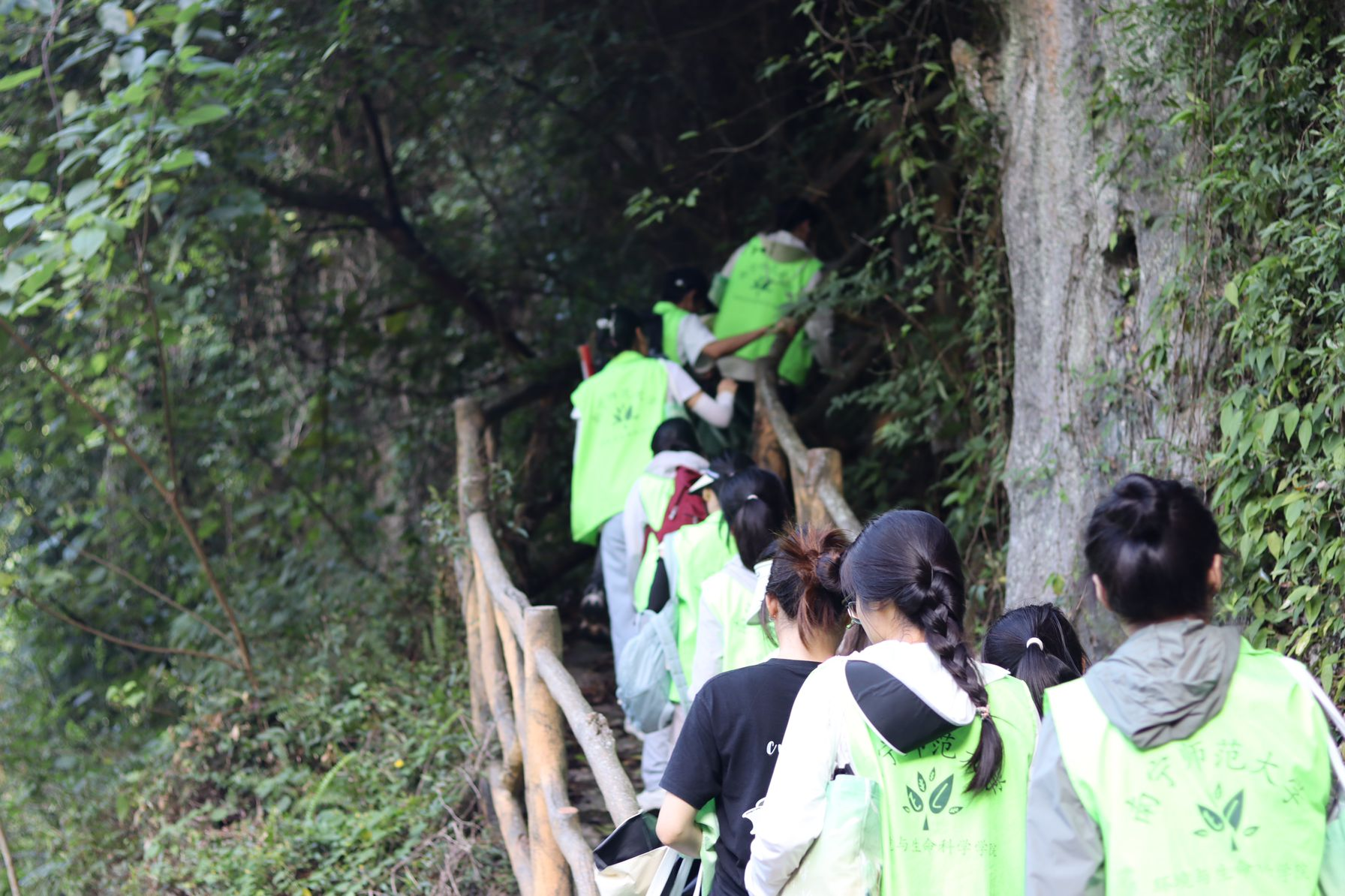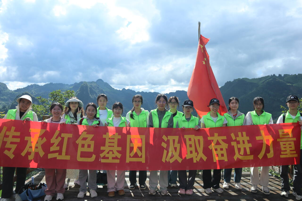 实践团成员们还一同前往被誉为桂西北“狼牙山”的卡层山,爬上革命烈士韦氏送抱敌跳崖遗址。爬山的路途十分陡峭,每个人都留下了汗水,由此更能体会到革命烈士不畏艰辛、献身革命的伟大。山顶,鲜艳的五星红旗迎风飘扬,成员们的爱国情怀和民族自豪感油然而生。