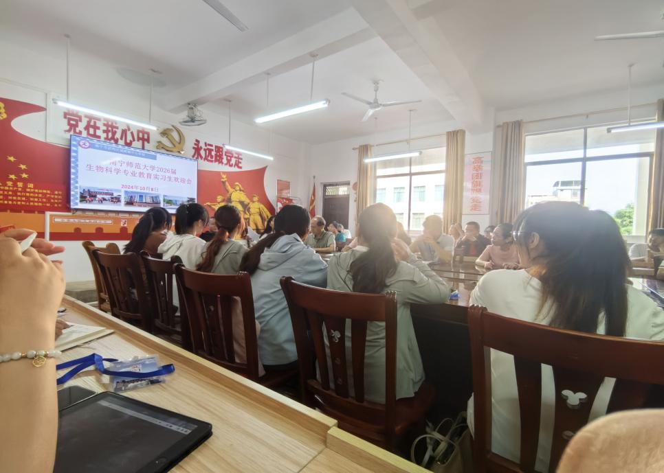 2024年10月8日,太阳成tyc33455ccwww与南宁市武鸣区城厢镇中心公司召开了实习见面会,公司生物科学专业的实习生将在该校进行为期一个月的教育实习。城厢镇中心公司领导、实习指导教师和全体实习生参加见面会。